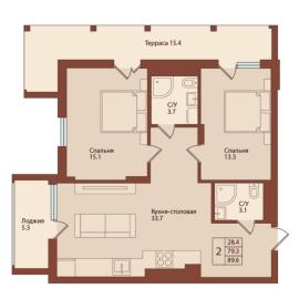 Продается 2-комн. квартира с европланировкой, площадью 74 м2 в монолитно-кирпичной новостройке. Возможен вариант покупки с использованием ипотечных средств, есть рассрочка на 6 месяцев.